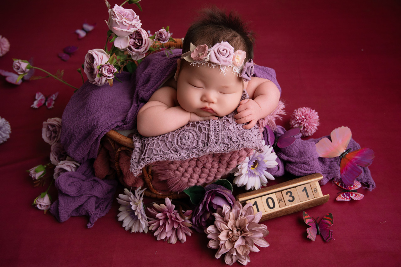 當天親友比較多且穿的多件寶貝緊張又熱心情不好不太笑,但攝影師、引導師還是很有耐心且專業的努力哄寶貝~